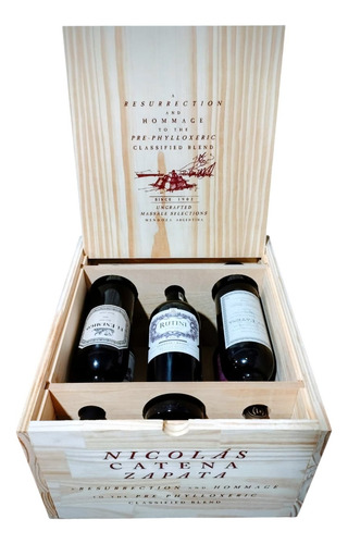 Las añadas pueden variar de acuerdo a disponibilidad, si desea alguna en especial consulte antes de realizar la compra. La caja de madera se encuentra sujeta a disponibilidad, pudiendo ser de Nicolás Catena o Gran Enemigo, si prefiere alguna en particular consulte antes de realizar la compra.