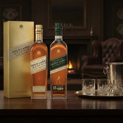 El Johnnie Walker Green Label es un whisky de mezcla que destaca por su complejidad y profundidad, con un añejamiento de 3 años que resalta sus notas de frutas y especias. Por otro lado, el Gold Label Reserve ofrece una suavidad excepcional, con un perfil de sabor que combina matices de miel y vainilla, creando una experiencia de degustación equilibrada y placentera.